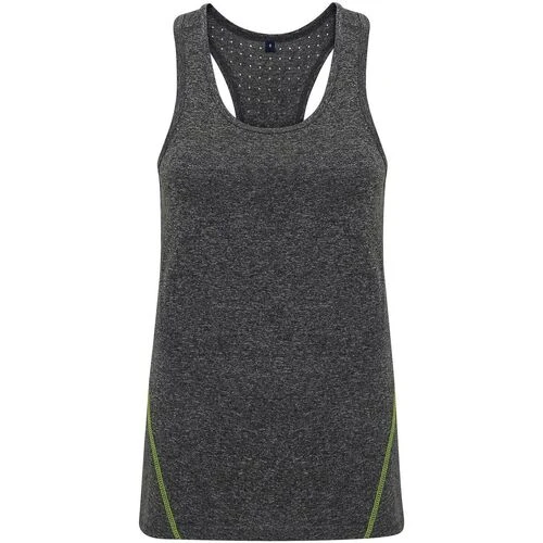 TriDri Dames/dames Lasergesneden Mouwloos Vest. Stretch vest. Tweelingnaaldsteek op de zoom. Dubbele dwarsband. Strategisch lasersnijden om het ademend vermogen te verbeteren. Zacht aanvoelende lycra. Materiaal: 90% polyester, 10% elastaan. Ref: UTRW6279